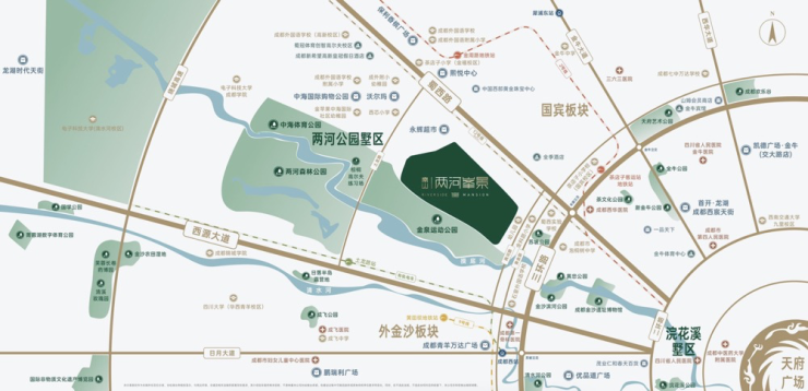 该项目位于西至三环,两河低密住宅区,地处成都市中优核心地带,临近完善配套设施,千亩公园,外出繁华,内进宁静。