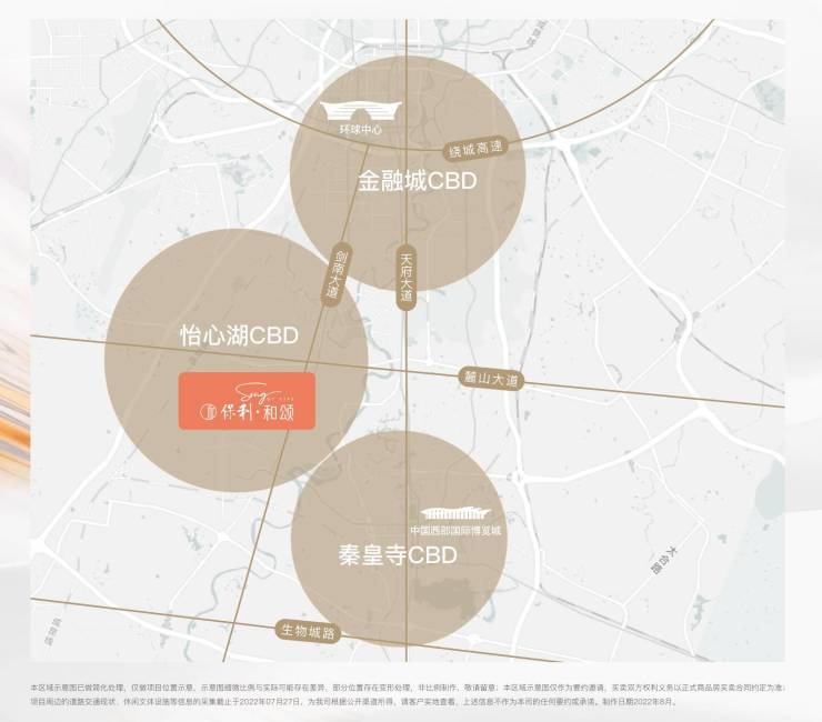 双地铁5/19号线怡心湖站交汇,三纵三横主干道贯通全城;15分钟接驳双流国际机场,30分钟直达天府国际机场。