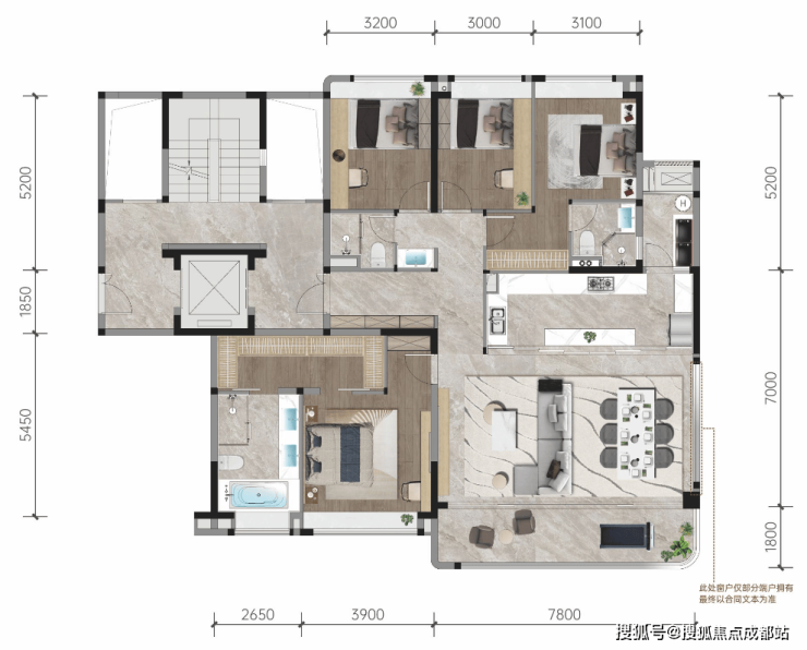 户型布局兼顾仪式感与实用性,采用动静分区设计,首层规划客厅、老人房,二层布局卧室套房,互不干扰,充分保护隐私。全系叠墅标配全套房设计,建面240㎡户型做到四房四卫,建面350㎡户型打造五房四卫,满足多口之家居住需求;350㎡顶配户型更是规划3层空间,顶楼打造全主卧套房,搭配超大星空露台,圈层尊崇感拉满。176㎡户型: 端户享270°全景视野;7.8米开阔横厅