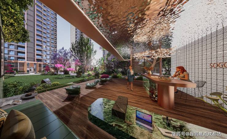 一环双轴四花园 酒店式园林:秉承酒店式花园派生活美学理念,围绕“一环”“双轴”“四景”为高知客户提供精致舒适高品质的园林生活空间。