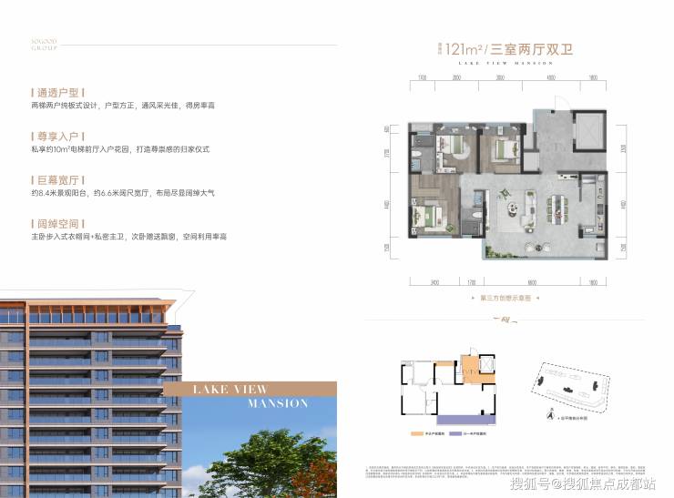 独立的电梯厅入户、私享入户花园、6.6米阔尺宽厅,8.4米景观阳台,版式通透、主卧步入式衣帽间+私密主卫,次卧均赠送飘窗,户型利用率高