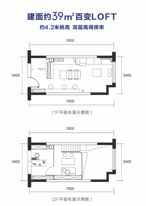 - LOFT(层高4.2米):主力40㎡
