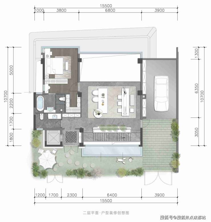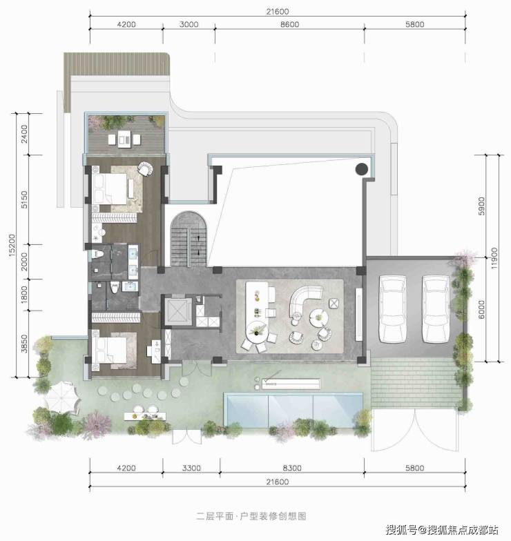 3、豪宅配置拉满:独院户均占地约0.58亩,稀缺土地资源占有;独立花园+独立车位+独立泳池(预留空间自行改造);
