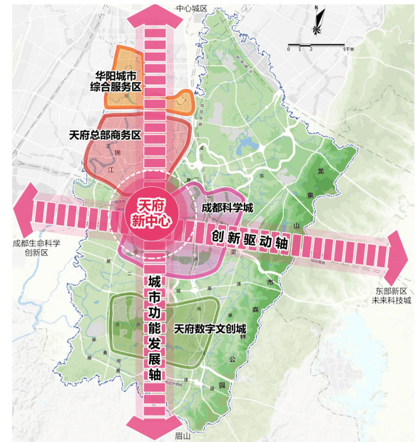 国家级战略新区,成都未来新中心:根据《直管区总体规划(2021-2035年)》数据显示,天府新区成都直管区将成为成渝地区双城经济圈的创新极核和开放门户、国家级新区高质量发展样板以及中国式现代化公园城市先行区。