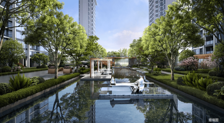 一环、两轴、七景酒店式度假园林:整体绿地率约35%,无划分私家花园,园区实际绿地率可达50%以上。
