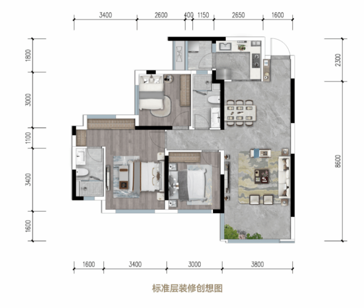 → 户型亮点:布局方正通透,270°环幕视野,约32㎡客餐厅越级之作