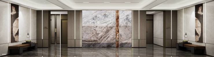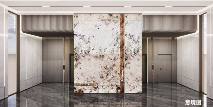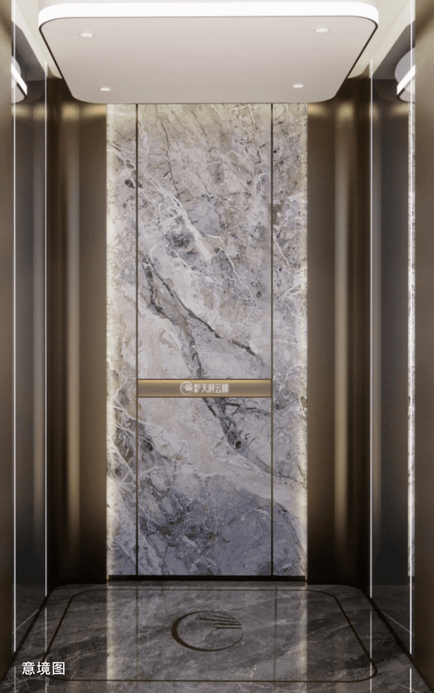 4. 电梯轿厢:选用名贵石材与铜条铺设地面,四周装饰艺术岩板+不锈钢,每次电梯门打开时,精致奢华感扑面而来。