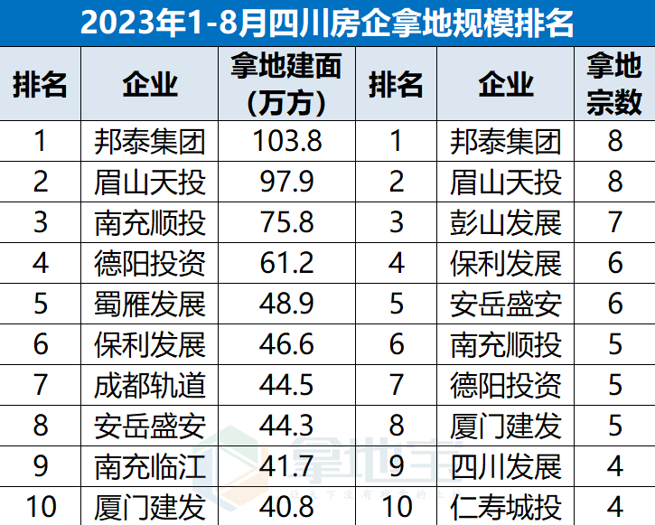 稳健经营 雄厚现金流:2023年1-8月邦泰土地购置规模稳居四川房企区域榜首,全川唯一拿地超百万方的企业,公司整体经营稳健,现金流实力充沛。邦泰集团2023年至今,在成都、重庆、合肥等一二线城市成功购地13宗,耗资超60亿元,新增土储面积约80万㎡。