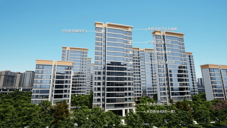现代光感美学 精工品质:板块唯一全景封窗光感立面,计半面积全景落地窗交付,用精工“质”敬美学