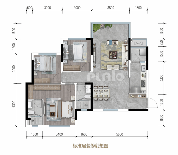 → 户型亮点:布局方正通透,270°环幕视野,约33㎡客餐厅越级之作