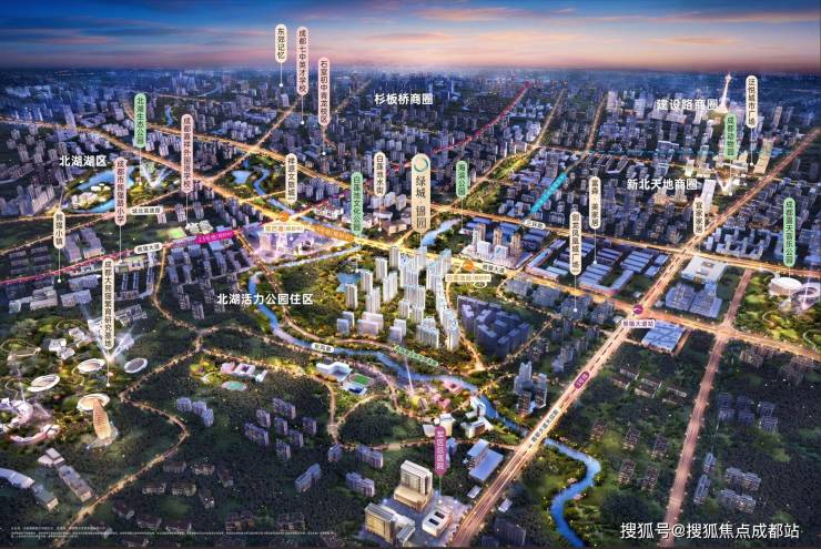 成都三大湖区,代表顶尖科技的兴隆湖,因国际赛事大运会腾飞的东安湖,以及依托世界级IP“大熊猫”-成都熊猫国际旅游度假区,以“熊猫、国际、旅游”为路径,打造国际文旅名片的北湖。且唯有北湖,位于成都主城区之内。