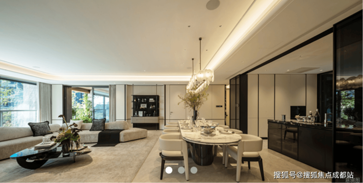双入户仪式:约17㎡入户光厅设计,户内独立奢石照壁玄关大尺度LDK:约90mLDK洄游方厅设计,餐客厨无界互动