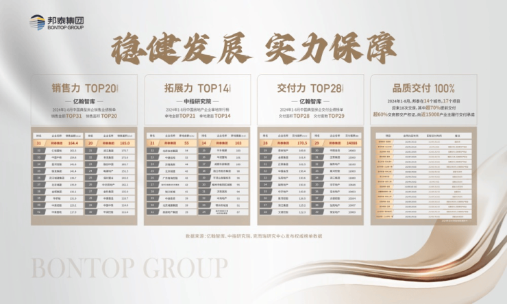 17年深耕34城,累计开发130余个项目,总建筑面积超2500万方。2024年1-8月销售面积位列全国TOP20,成都天府云璟项目跻身全市单盘销售TOP9。2023年新增土储面积全国TOP13,2024年持续保持TOP14的拿地规模。交付方面保持100%按时履约,超半数项目实现提前交付。
