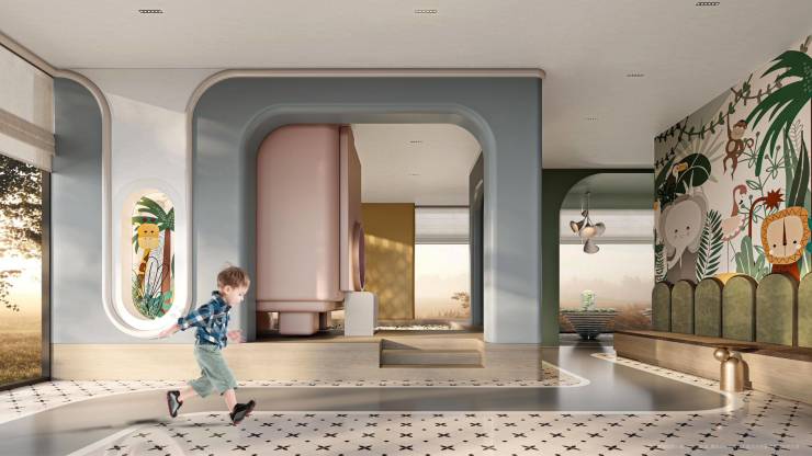 以马卡龙柔和配色,营造安心、梦幻、友好的成长环境,为孩子设计的“自然探索乐园”。