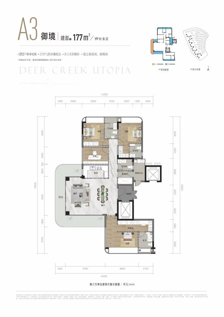 ② 三梯两户配置:首创"主仆动线分离"系统,保障居住私密性