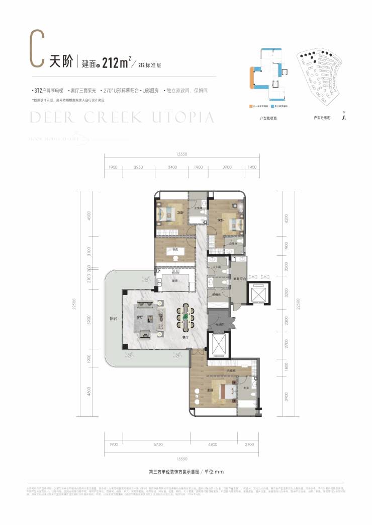 ③ 35㎡环形观景阳台:270°全景视野,可承载10人同时聚会的奢阔尺度