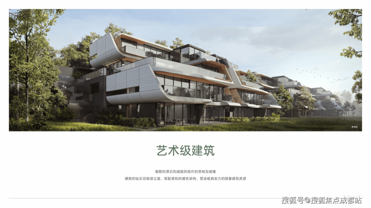 艺术级建筑 粗粝与细腻的碰撞,砖石切割感立面,搭配柔和的暖色架构,藏于自然却不缺锋芒