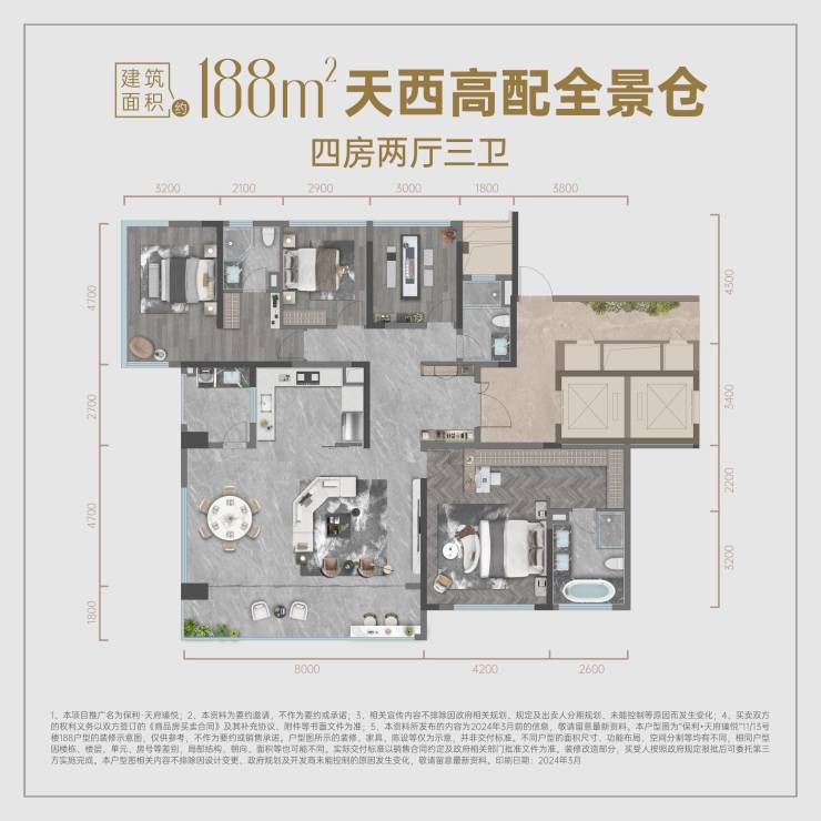 产品面积:120㎡、133㎡、143㎡、188㎡