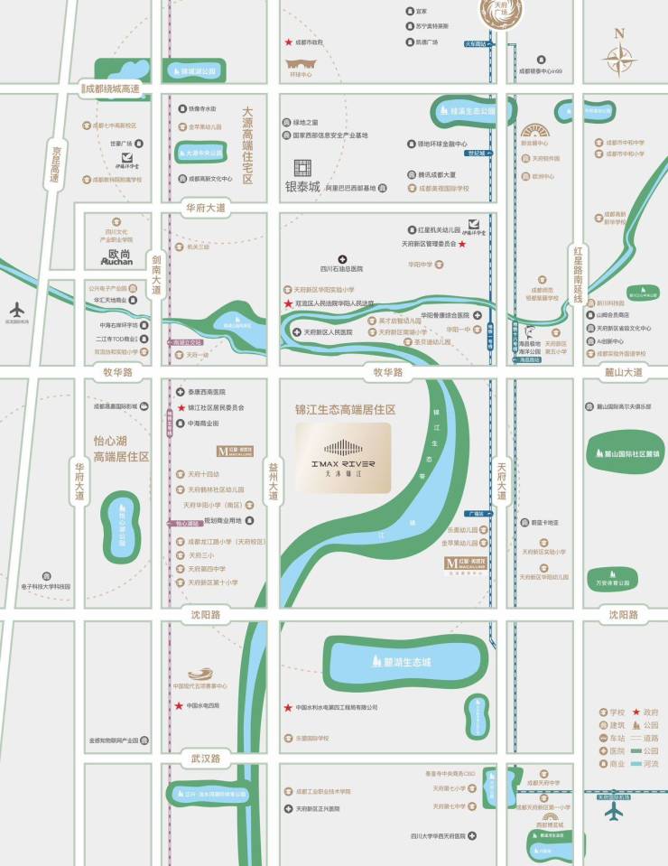 • 城市路网:"两横四纵"主干道体系,30分钟直达天府广场