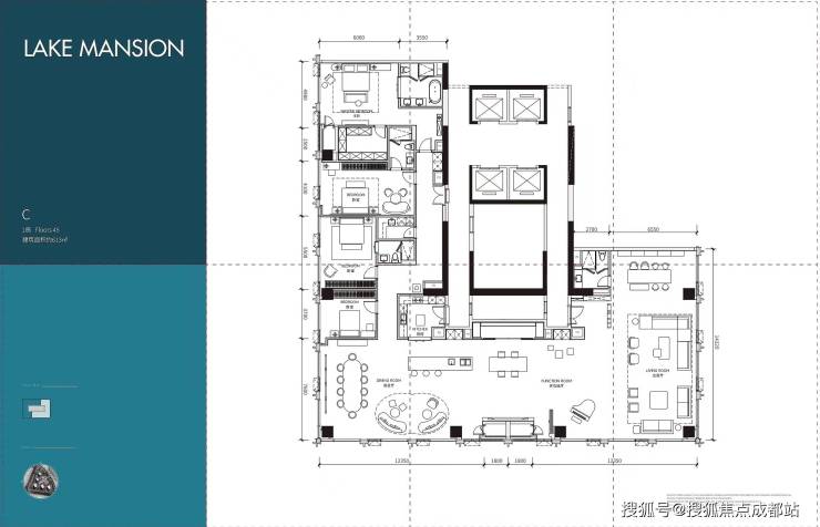 C户型:14米朗阔开间、28米奢华进深、270º湖滨视野、四室四厅五卫双厨