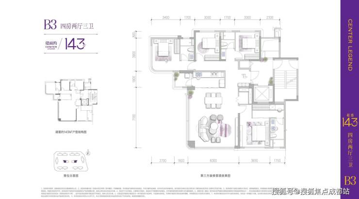 建面约143㎡ | 超感四房•光厅双厅三卫 启鸣宸序