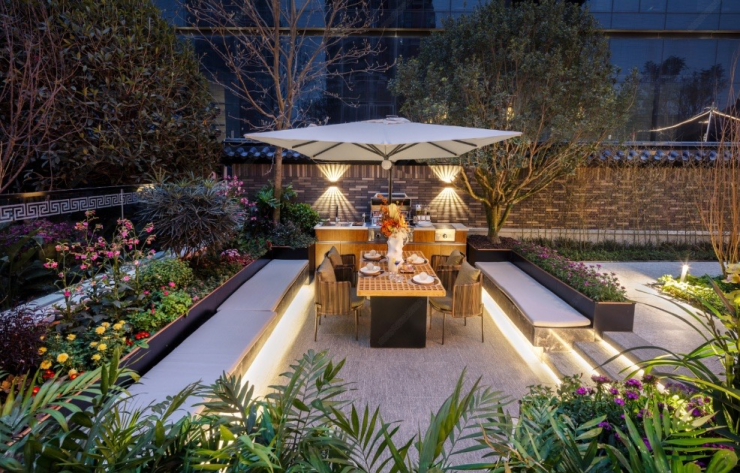 精心规划的下叠入户花园,将自然景致引入生活。草木扶疏间,可静观四季更迭,尽享"闲庭信步,坐看云起"的雅致生活。