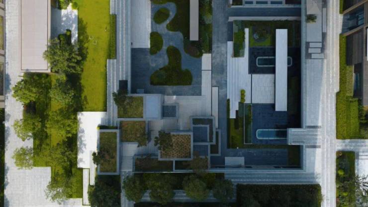 项目占地约34亩,却将约90%的土地用于景观园林,负责园林设计的上海朗道以“垂直老街”为理念,在市中心营造出独有的“都市秘境”;三重归家礼序层层递进,从迎宾古松前庭的庄重,到叠瀑秋风内庭的静谧,到中庭无界会客厅的通透,每一步都是对东方礼序的现代诠释。