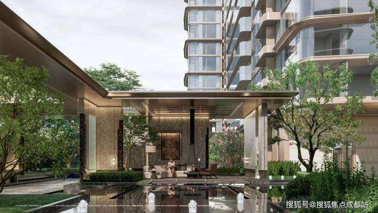 【落影橱窗】迎宾水庭与光影橱窗相映,以博物馆级空间礼序营造尊贵归家体验。