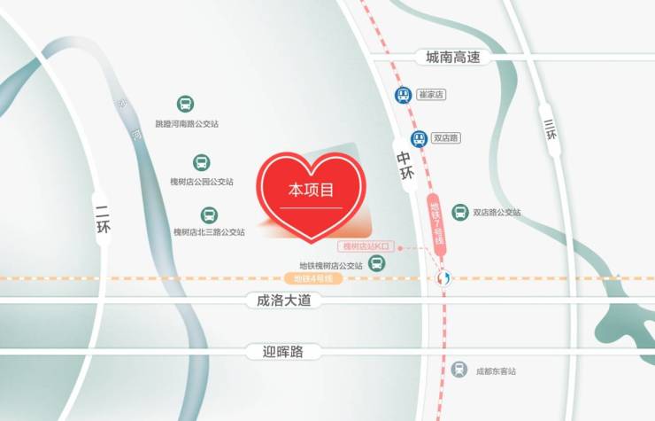 3、【4/7槐树店站 双轨TOD环绕】4号线横贯东西,环状7号线链接全城。紧邻4/7号线汇聚槐树店地铁站(K口)。同时拥有城市主干线【东二环+中环+三环+成洛大道】,项目交通配套趋近天花板级别。