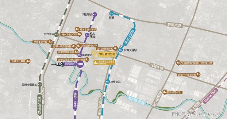 项目毗邻廖家湾TOD(在建)和幸福桥TOD,形成"站城一体"的现代化城市空间。其中廖家湾TOD规划商业体量约1.4万㎡,将引入高端零售、国际影城等业态。