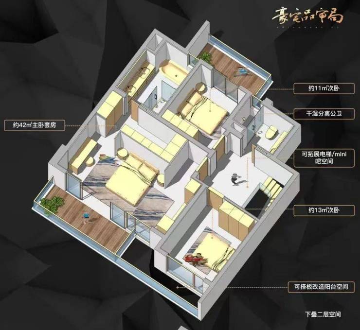 • 主卧系统:6.6米可变面宽,支持传统/创意两种家具布局