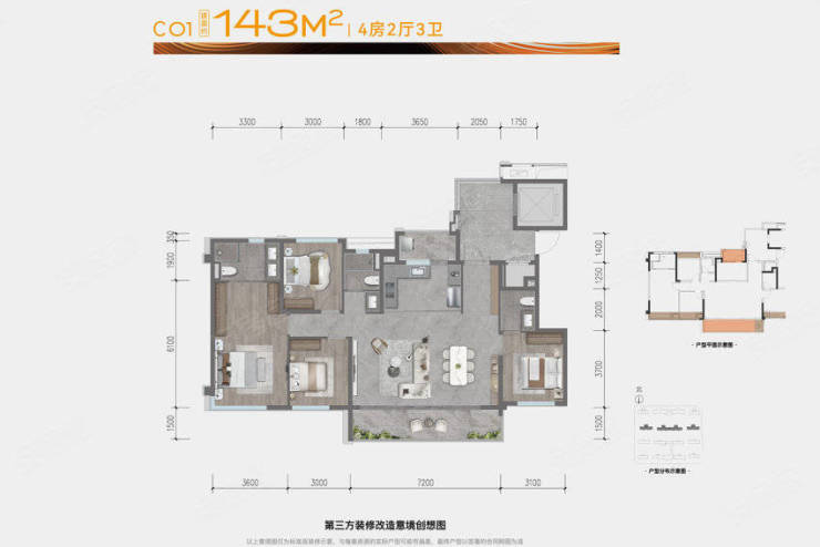 2. 建面约 143㎡阔景四房