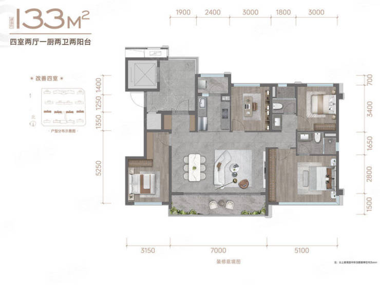 1. 建面约 133㎡改善四房