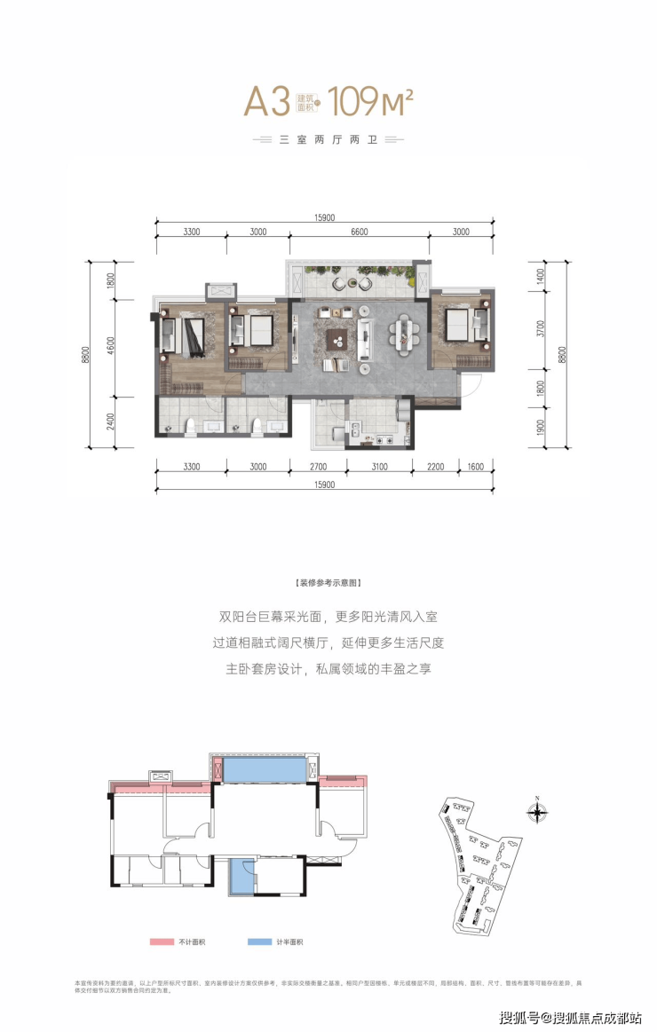 建面:103m²、112m²、118m²(套三双卫)