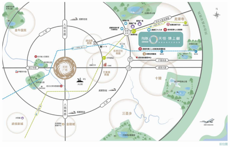 生态:约3700亩北湖公园,成都最大生态绿肺;北湖生态公园,距项目直线距离约1公里,主城稀缺生态湖区