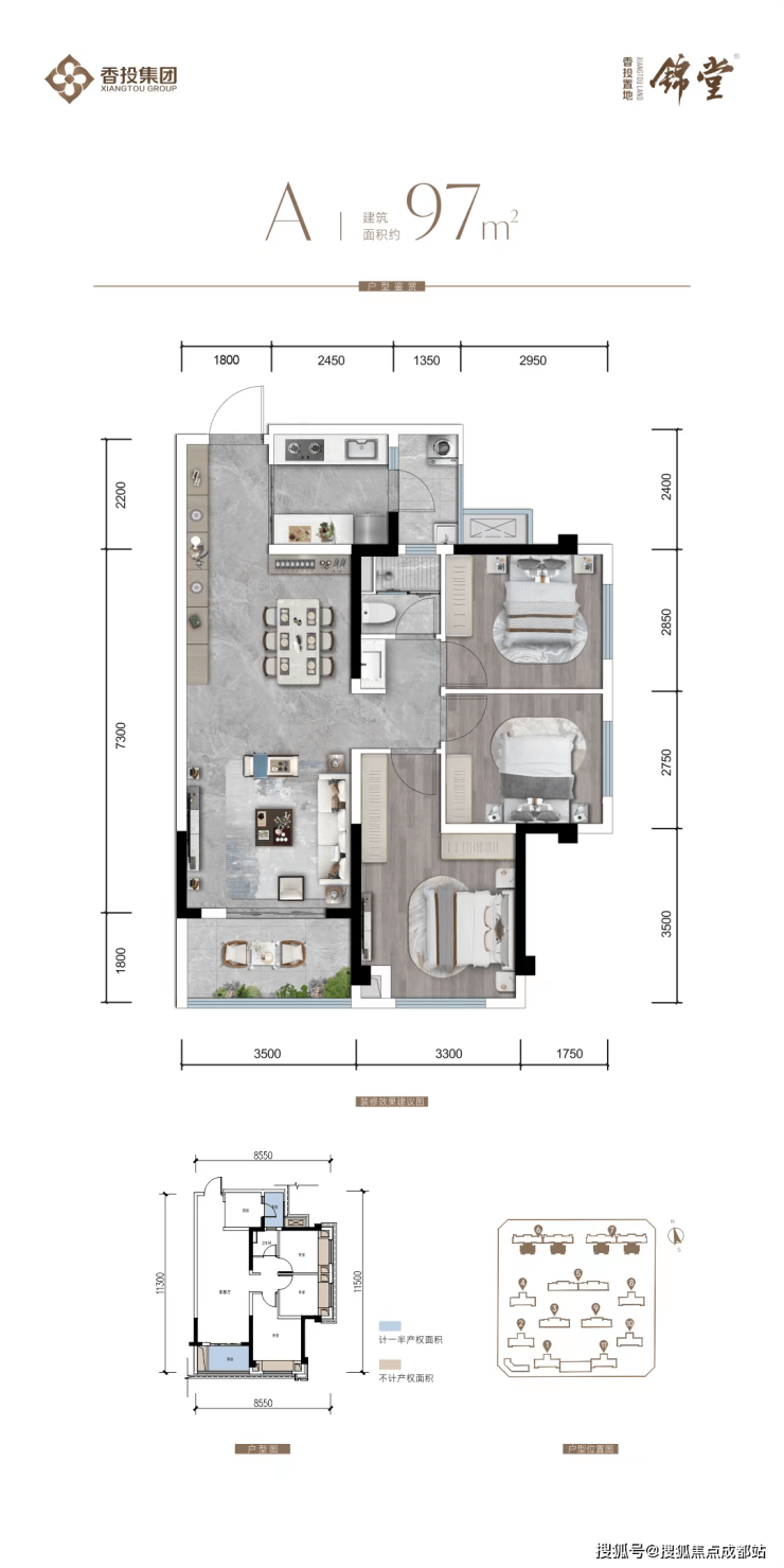 瞰景高层(6#、7#清水交付):建面约97-120㎡(97㎡享13㎡赠送,120㎡享14㎡赠送)