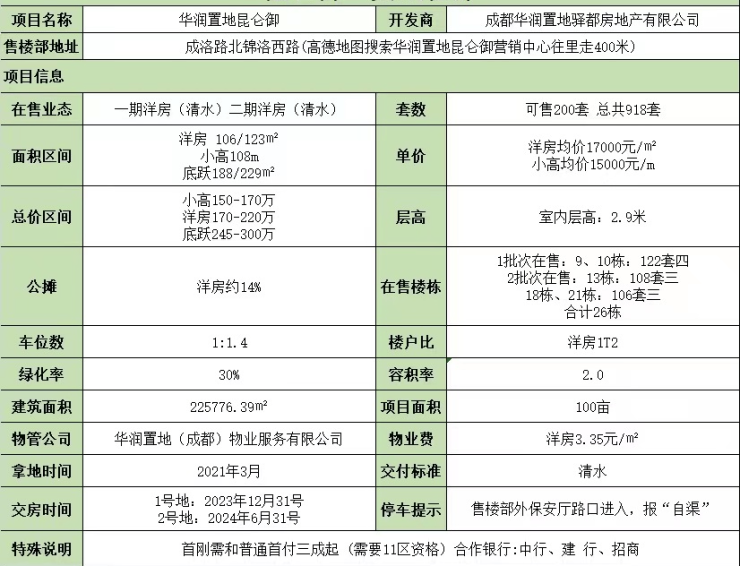 成都【华润昆仑御】106-123m²品质小洋房|房价优势|热销户型拆解→售楼处电话|优惠活动|楼盘详情