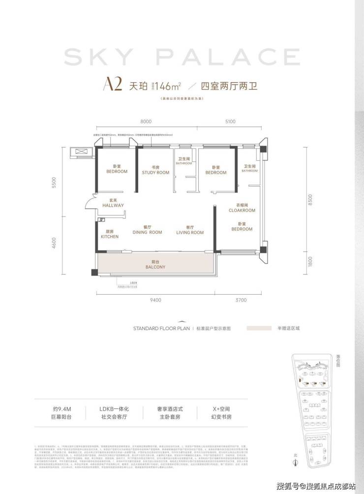 9.4米观景阳台,可变空中绿洲;6米横厅设计,重构社交生活场景;星级主卧配置,定义品质生活标准;多功能书房,实现工作生活自由切换