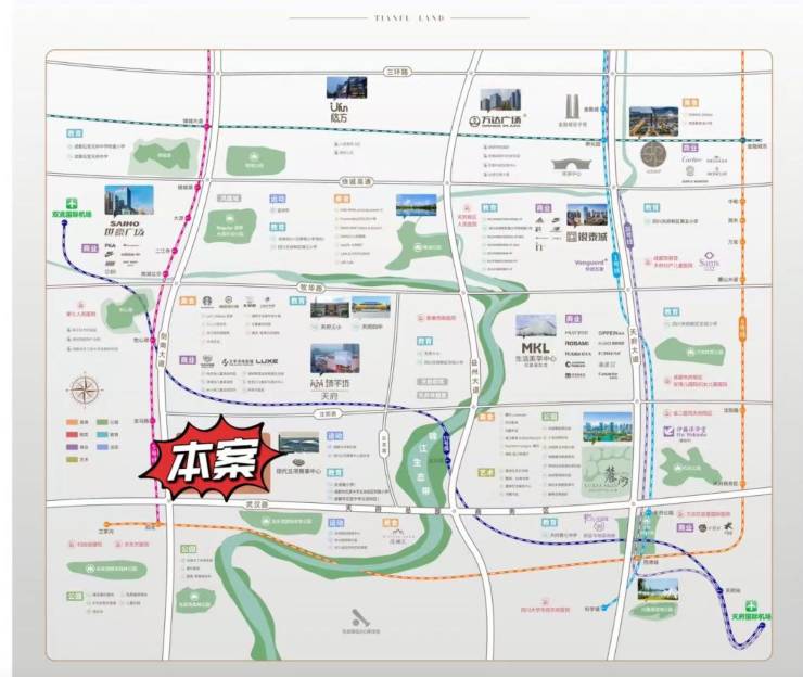 双主干道(剑南大道、武汉路)+三地铁(5/6/19号线),15分钟直达金融城、天府CBD等核心区
