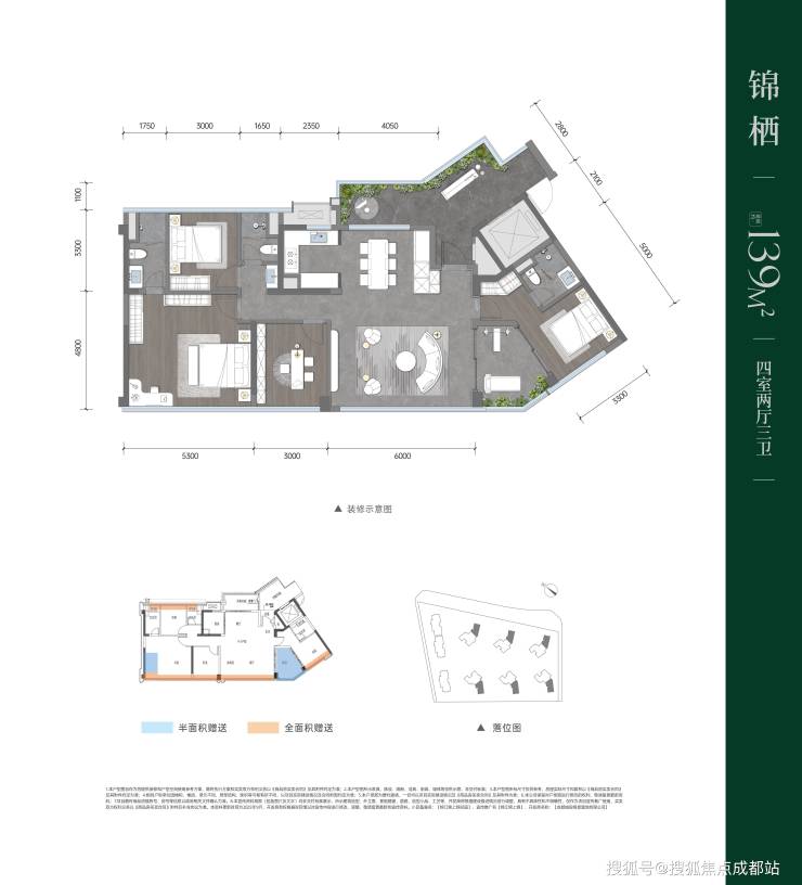 锦江锦上锦位于成都锦江区攀成钢板块,项目占地约32亩,容积率仅2.0,规划8栋14-17层纯板式小高层,全部采用2T2户设计,总户数仅278户。主力户型为建面约139-176㎡套四产品,是主城罕见的低密度改善社区。