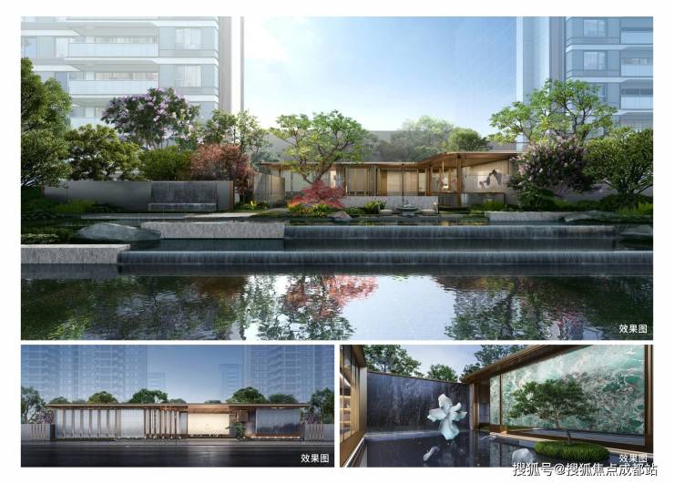 景观体系:十字轴线景观布局,打造九大主题园林(含天工锦卷、芙蓉汀院等),户户享中庭景观