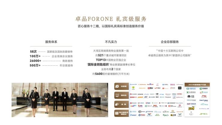 引进卓越集团顶级商企服务品牌"卓品FOR ONE",提供金钥匙标准礼宾服务。