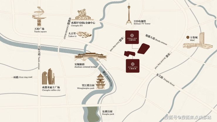 项目所在的东大街一环路地段,堪称成都城市资源的集大成者。这里上承春熙路-太古里百年商脉,下启攀成钢国际住区,处于成都传统市中心与新兴豪宅区的黄金交汇点。