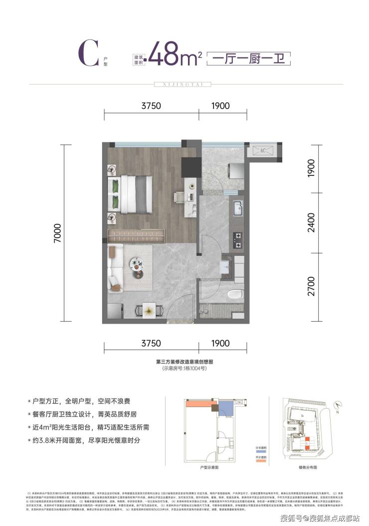 C户型:48㎡|一厅一厨一卫