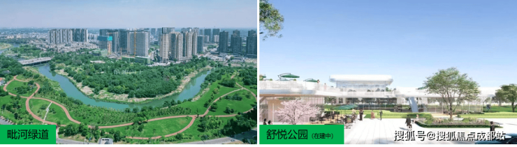 毗河绿带,占地约565亩,距项目直线距离约700米,可放慢脚步沿河漫步,周末露营、骑行,享受都市里的悠然慢生活;