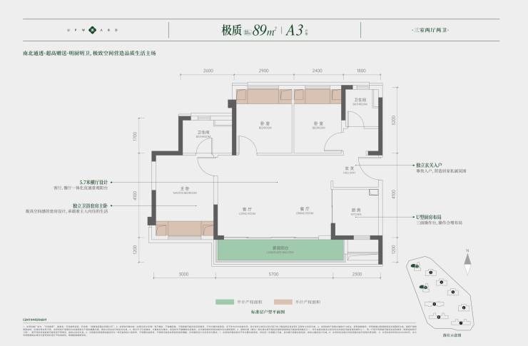 户型亮点:约14米超大主景观面;约5.7米大面宽横厅。