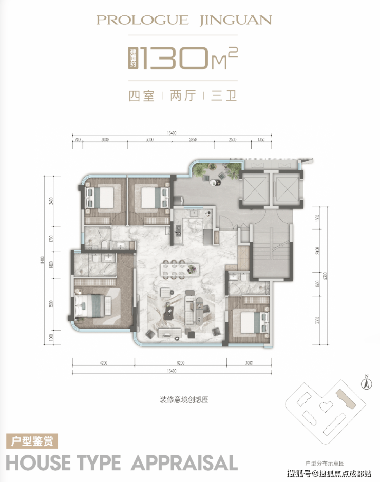 建面约130㎡户型亮点