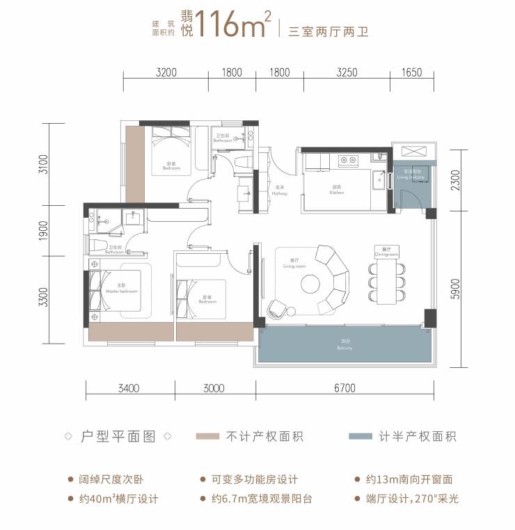 建面约116㎡-三室两厅两卫
