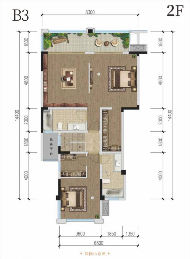 在售主力户型:建面约160㎡实景叠墅(附赠面积达300㎡)