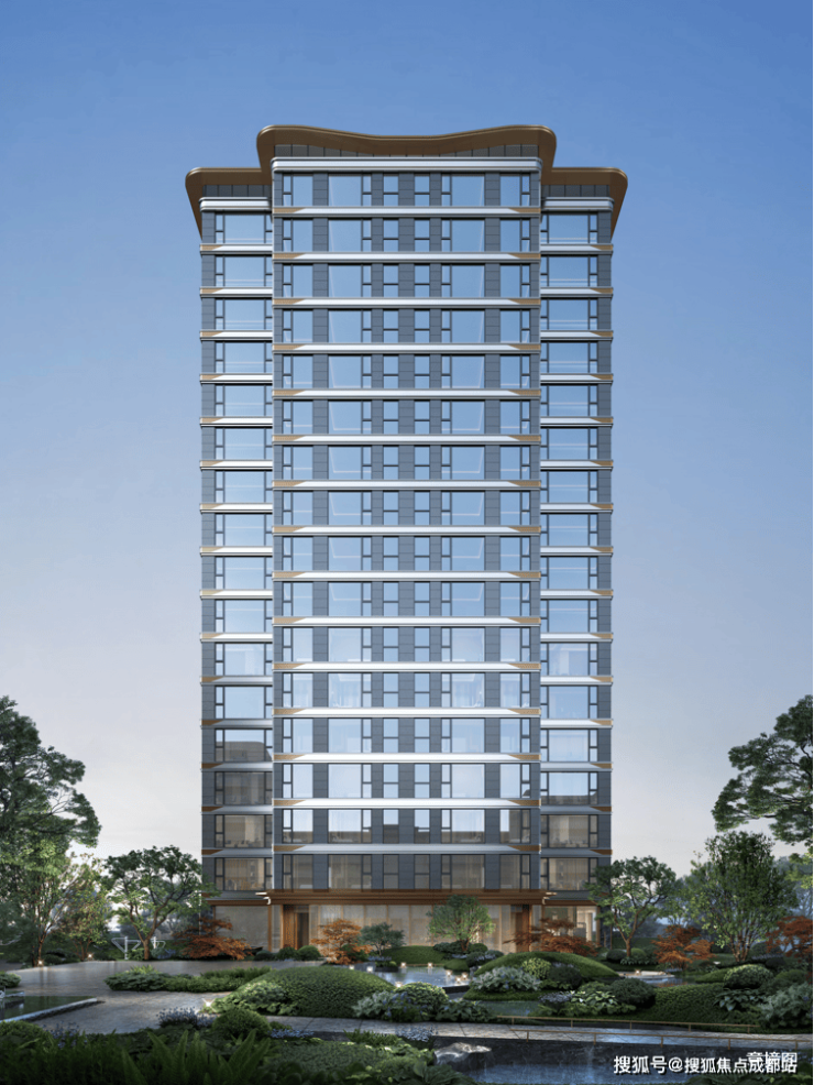 同频「豪宅设计」语言:汲取毗河映画灵感,弧形线条+鎏金冠顶,金属装饰搭配大面积LOW-E落地玻璃,打造地标级建筑立面。客厅一体化全落地窗,高颜值、更实用、省成本。